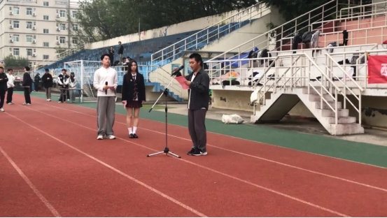 国歌响彻,全场肃立。老师与同学们神情庄重,齐声高唱中华人民共和国国歌。