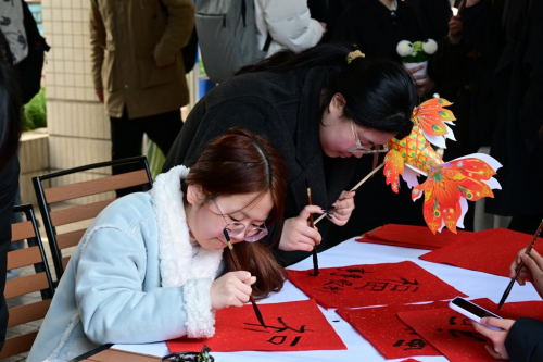 活动现场设置国风手工体验、传统民俗游戏、诗词文化互动三大主题展区。在手工艺体验区,师生们参与剪纸、灯笼制作及书法书写活动,在动手实践中感受传统手工艺制作的深厚文化内涵;民俗游戏区内,猜灯谜、投壶等传统项目广受师生青睐,灯谜内容涵盖传统文化、节日习俗及西邮特色学科知识,师生们相互探讨、积极参与,现场气氛热烈融洽;诗词互动区以飞花令、诗词对答等形式开展,师生们围绕经典名篇、传统诗词展开深入交流,在墨香诗韵中感悟中华传统文化的独特魅力。