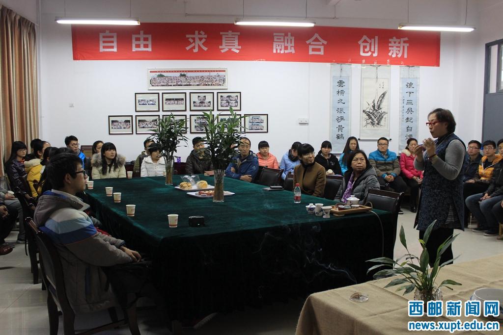 吕梅从茶的分类讲起,详细叙述了茶的等级及各级别的主要特点。她现场教大家区分几种易混淆的名茶,并纠正大家在生活中对茶认识的误区。吕梅通过现场演示绿茶、乌龙茶、大红袍、碧螺春等几种茶的泡法,向同学们介绍了干泡法和湿泡法两种泡茶方法的具体步骤、注意事项以及主要区别。此外,吕梅还通过演示泡茶的过程,向同学们拓展了冲泡方法、器具选择、茶道礼仪等方面的知识。同学们在古琴曲的伴奏下,品尝各类茶的同时,不仅学到了茶道方面的知识,也借此修生养性,陶冶情操。黄小梅希望同学们通过活动学习和了解中国博大精深的传统茶道文化,以此修生养性,更加健康快乐的学习和生活。