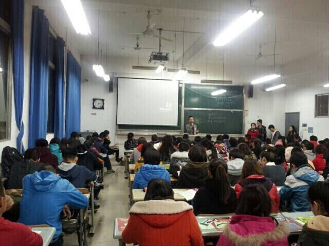(本网讯)11月27日晚,外国语学院和5号党员工作站举办的“名师讲堂”在基础教学楼A101教室精彩开讲。新东方学校口语名师薛文涛讲述“如何更快、更有效地提高外语水平”。我校通信与信息工程学院、理学院、外国语学院的150名学生聆听了报告。