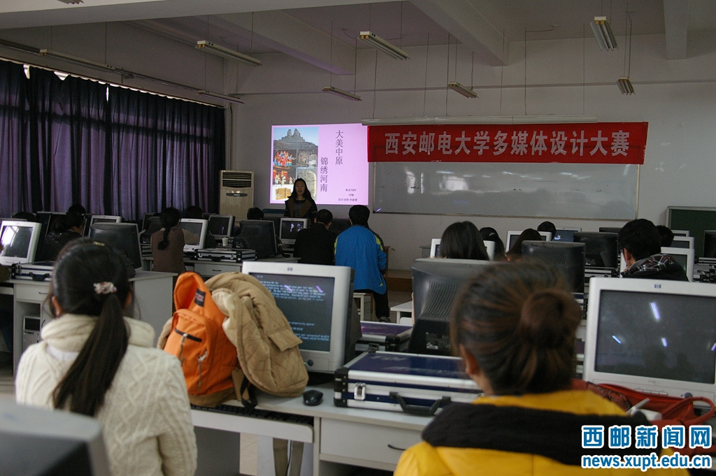 (本网讯)12月14日下午,由计算机学院主办的第四届多媒体设计大赛在我校长安校区二号实验楼538教室举行。计算机学院副院长翟社平,质量监控领导小组组长孟彩霞,基础教学部主任陈皓等教师担任评委。