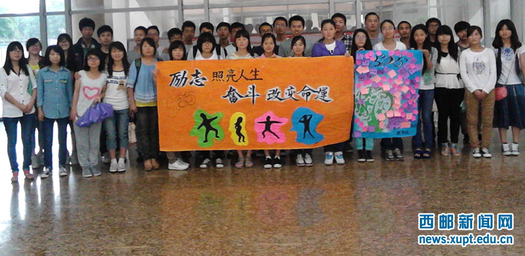 同学们通过“呵护心灵,拥抱生活”心灵寄语活动表达自己对心理健康的关注和对他人的美好祝福;2012级信息、物理专业“励志照亮人生,奋斗改变命运”的主题班会传递着莘莘学子勇于担当,奋发向上的正能量;在“5.25我爱我”百人签名活动中,虽然天空下着大雨,但阻挡不了同学们的热情,纷纷在五彩的卡片上写下了爱自己、爱生活、爱青春、爱西邮的感悟,传递祝福与爱。