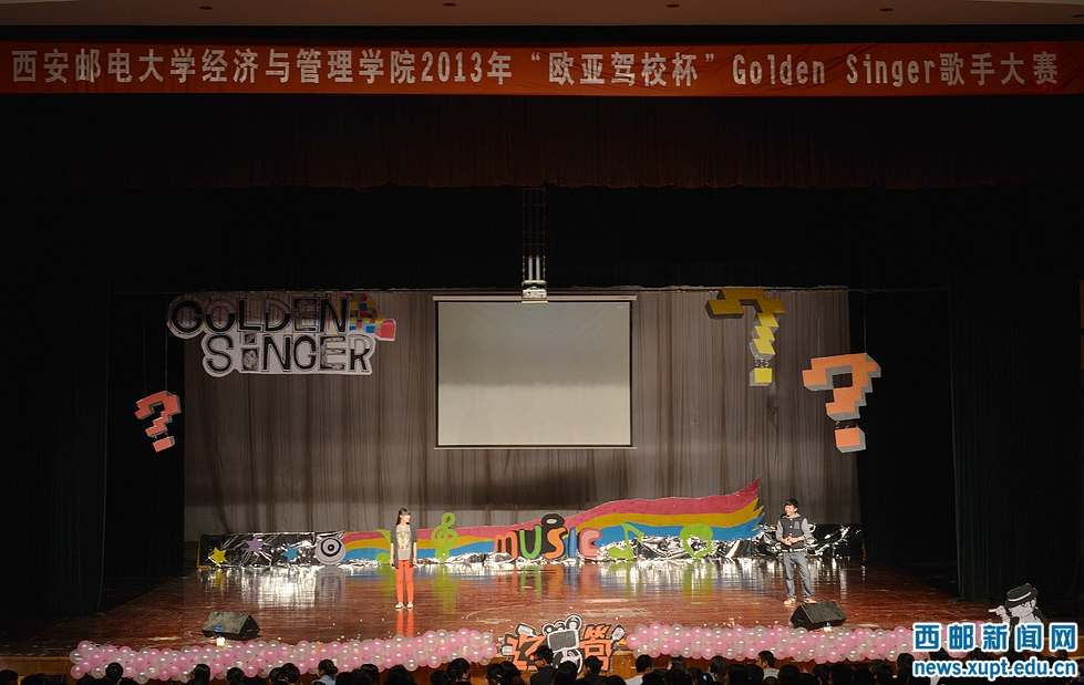 (本网讯)3月28日晚,我校长安校区大学生活动中心灯火辉煌,人头攒动,由经管院团总支、学生会主办的第四届西邮2013“欧亚驾校杯”golden singer大赛在此隆重上演。