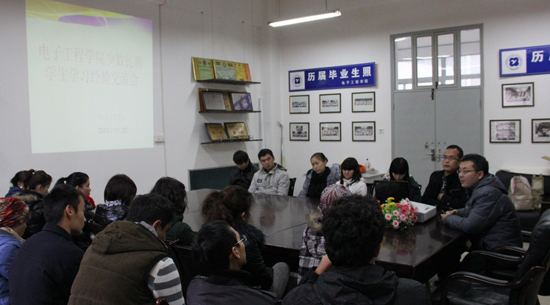 (本网讯)11月22日下午,电子工程学院在长安校区举办新疆籍少数民族学生学习经验交流会。该院党总支副书记田东、辅导员及该院新疆籍少数民族学生参加交流会。