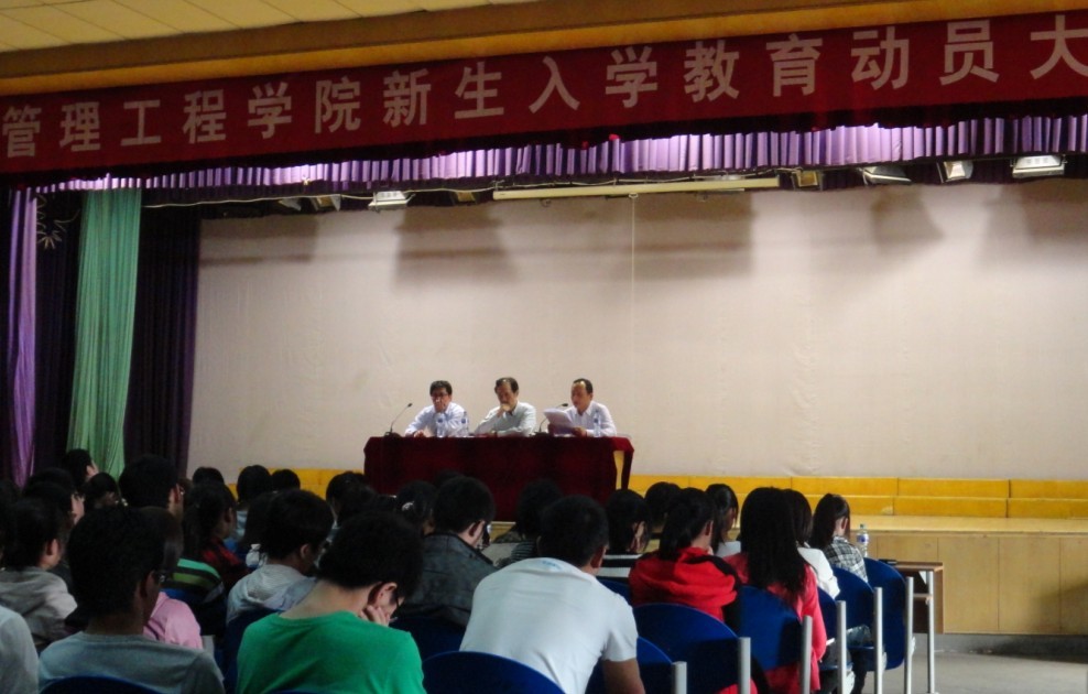 (本网讯)9月29日下午4时,伴着庄严的国歌,管理工程学院新生入学教育动员大会在图书管五楼报告厅正式拉开帷幕。出席此次大会的有陇小渝院长、樊广义和楼旭明两位副院长等。通过本次动员大会,让新生对大学生活有了更深的认识和新的规划。