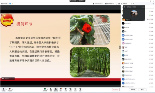 最后,主持人及与会学子分别就参加初衷,实践收获及后续社会实践方向等方面和团队成员们进行交流提问。