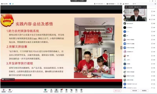 分享会上,带队教师孙晓桐以“深耕西部计划,传承志愿精神”为题分享了留坝县马道镇政府、江口镇政府“西部计划”志愿者王驰、昝亚东的故事。着重介绍了“西部计划”志愿者的报名初衷、录用方式、后续发展等问题;曹珂扬从实际经历、团队成员所思所悟对暑期社会实践工作进行总结,希望广大青年学生关注“西部计划”志愿服务、关注乡村振兴,并结合自身所学从实际出发,真正将助力西部发展与乡村振兴做到实处,将个人发展与国家命运相结合,到祖国和人民需要的地方绽放青春力量。
