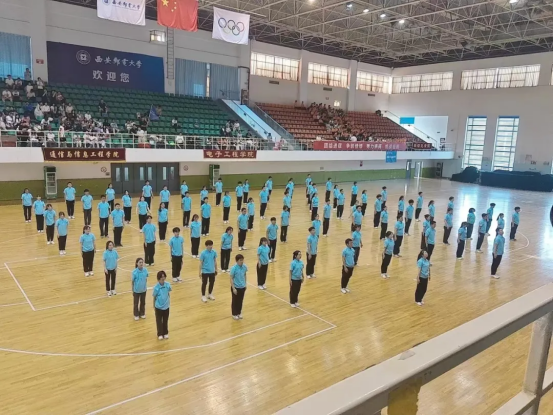 比赛过程中,参赛选手们在领操老师陈光灿和苏瑜的带领下,身着整齐划一的服装,昂首挺胸地迈着整齐的步伐踏进赛场。同学们动作规范标准,整齐划一,节奏明快,展现出高超的竞技技巧和昂扬的精神风貌。“意坦荡,青春尽显鸿鹄志,扬帆起航,劈波斩浪。心飞扬,梦想天空任翱翔,通院学子,再创辉煌! 好好好!”的口号响彻四方,气势如虹。