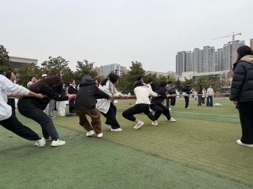 本次趣味运动会分为个人项目和团体项目两个单元。在企鹅摇摆、踢毽子、摸石过河、定时投篮等个人项目比赛现场,参赛学生认真聆听比赛规则,有序参加每一项比赛,体现出良好的运动状态和体育风尚。在拔河、呼啦圈传递、跳大绳、夹投乒乓球接力等团体项目比赛中,彰显了学院学生团结奋进、积极向上、努力拼搏的精神风貌。